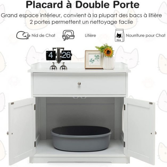 Voir le produitEnceinte de Bac à Litière pour Chat - Meubles Toilette Cachés pour Chat avec Tiroir et 2 Portes
